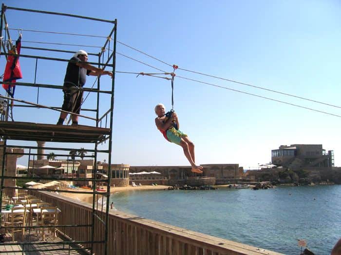 אומגה- (גלישה זוויתית)גלישה זו מתבצעת בהחלקת גלגלות על כבלים או חבלים ממקום גבוה בזוית כלפי מטה.